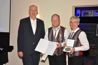 Landrat Woide überreichte die silberne Ehrenplakette des Landes Hessen - unterzeichnet von Ministerpräsident Boris Rhein - und würdigte den Verein als wichtigen Kulturträger. Auch Leander Eismann gratulierte herzlich und erinnerte an die Rolle des Vereins als Gründungsmitglied des Musikverbands.