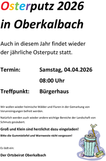 Auch in diesem Jahr findet wieder der jährliche Osterputz statt.