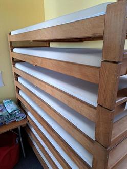 Die Kita St. Sebastian freut sich über neue Betten für die Kinder und gibt nun den alten Bestand gegen eine kleine Spende ab. Von dem Erlös soll der Turnraum der Kita neu gestaltet werden. Beispielsweise neue Sitzkissen oder passende Aufhängungen für diverse Spielmaterialien sollen die Sicherheit und die Struktur des Raumes verbessern, so dass dieser einladender für die Kinder wirkt.
