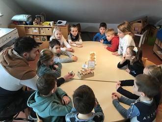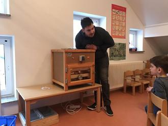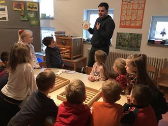 Der erste Vorsitzende Christoph Becker, der die Aktion mit viel Herzblut und Riesenengagement begleitet hat, kam mit reichlich Vorbereitung und Anschauungsmaterial zu uns in den Kindergarten. Er bereitete die Kinder mit allerlei Wissen und vielen interessanten Bildern auf das Projekt vor.