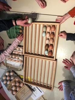 Die Spannung bei den Kindern stieg und jeden Morgen konnten sie es kaum erwarten wieder nach den Eiern zu schauen. Bei dem zweiten Mal durchleuchten war deutlich zu erkennen, dass von 51 Eiern 47 in der Entwicklung fortgeschritten waren. Da das Küken schon so viel Raum in dem Ei einnahm, konnte es kaum noch durchleuchtet werden.