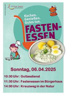 Auch in diesem Jahr am Misereor Sonntag, dem 06.04.2025 wollen wir gemeinsam mit Euch das traditionelle Fastenessen begehen. Dazu laden wir, der Kirchbauverein St. Vitus, Euch nach der Eucharistiefeier in St. Vitus (10:30 Uhr) ins Bürgerhaus ein.