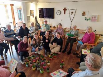 Am Ende des Projekts überreichte die Gruppe stolz ihre selbst gestalteten Blumengeschenke den Bewohnern der Einrichtung „Mutter Teresa“. Diese waren von der schönen Geste der jungen Menschen berührt und freuten sich über den Besuch.