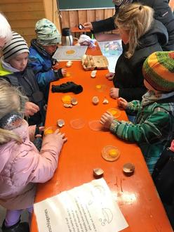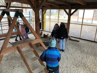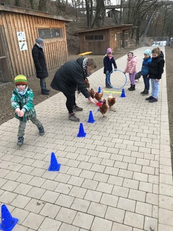 Wir beschäftigten uns mit der Frage, was eigentlich Eier und Hühner, Lamm und Hase mit dem Osterfest zu tun haben. Es warteten Tierbegegnungen, spannende Entdeckungstouren, Experimente, Bastelangebote und eine kleine Ausstellung auf uns. Mit einer Ostereiersuche wurde der Ausflug abgerundet. Zwischendurch konnten die Kinder noch ein Frühstückspicknick im Freien einnehmen und einige Tiere beobachten. Es war ein gelungener Vormittag mit vielen tollen Eindrücken und Erlebnissen.