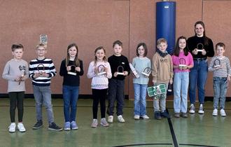 Die beste Springerin der Schule war Mathea Auth aus der Klasse 3a mit 15400 Seilsprüngen. Bester Springer der Schule war Benedikt Nüchter aus der Klasse 3b mit 20125 Seilsprüngen. Für den Einsatz gab es wundervolle Pokale für alle Klassensieger.