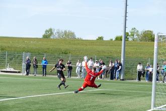 Nur eine Minute später war es erneut Tim Emrulla, der wieder über links den einschussbereiten Mirco Kekule bediente, dessen Schuss wurde aber von Gästekeeper Maximilian Lotz mit einer Glanzparade entschärft.