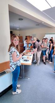 Nach etwa einer Stunde ging es dann in‘s Bürgerhaus zurück, um die vorbereiteten leckeren Köstlichkeiten, die Wildkräuter-Suppe, die Fichtenspitzen-Muffins, kleine Gebäckstangen mit Wildkräutern verfeinert oder die wunderbaren Wildkräuterbuttersorten auf biologischem Vollkornbrot zu probieren.