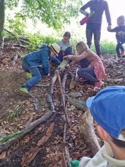 Beim Waldtag mit den Förstern Frau Kullmann und Herr Bernhard erlebten die Kinder einen abwechslungsreichen Tag voller Abenteuer, Naturerkundungen und gemeinschaftlicher Aktivitäten.