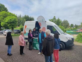 Auch Bürgermeister Mark Bagus zeigte sich interessiert und informierte sich bei Herrn Diller über die Resonanz der Veranstaltung. Rund 20 Seniorinnen und Senioren hatten den Stand besucht, was der Experte für eine kleine Kommune wie Kalbach recht beachtlich fand.