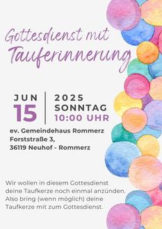 | 10:00 Uhr | Familien-Gottesdienst mit Tauferinnerung, |