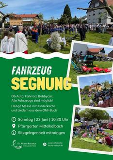 | Pfarrgarten MK | 10.30 Uhr | Heilige Messe und Fahrzeugsegnung |