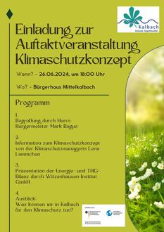 Klimaschutz ist Gemeinschaftssache! Daher ist es von großer Bedeutung, dass Sie als Bürgerinnen und Bürger die Möglichkeit haben, sich am Erstellungsprozess des Klimaschutzkonzepts zu beteiligen. Nähere Informationen dazu erhalten Sie in der Auftaktveranstaltung, die am Mittwoch, den 19.06.2024 26.06.2024 von 18:00 Uhr bis ca. 20:00 Uhr im Bürgerhaus Mittelkalbach stattfindet. Alle interessierten Bürgerinnen und Bürger, die gern etwas zum Klimaschutz in Kalbach beitragen wollen, sind herzlich zur Veranstaltung eingeladen.