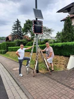 Aus dem Erlös der Genusstour rund um Veitsteinbach und Eichenried konnte im Frühjahr eine eigene Geschwindigkeits- Messanlage für beide Dörfer angeschafft werden. So konnten die Ortsvorsteher Holger Quitt und Christoph Heil der Gemeinde 1.612€ übergeben. Der gemeinde- eigene Anteil betrug rund 1.000€. Somit werden jetzt die Spitzengeschwindigkeiten und Uhrzeiten, wo wann am schnellsten gefahren wird, ermittelt und gespeichert. An Brennpunkten wird dann auch irgendwann mal richtig geblitzt werden.