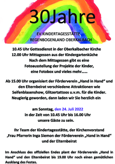 30 Jahre evangelische Kindertagesstätte Regenbogenland Oberkalbach