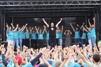 Das gelungene Schulfest endete am Nachmittag mit einem gemeinsamen Flashmob und einem Bonbonregen des Schulelternbeirates und des Kollegiums für alle Kinder. Allen Anwesenden wird das sehr gelungene Jubiläumsfest sicherlich noch lange in lebhafter Erinnerung bleiben.