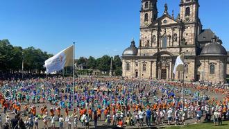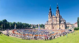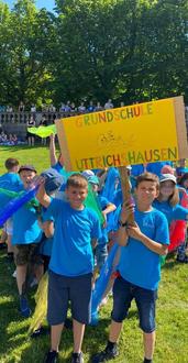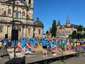 Ende Juni kamen acht "Musikalische Grundschulen" des Regionalverbundes Fulda auf dem Domplatz zusammen, um gemeinsam zu singen, zu tanzen und mit körpereigenen Instrumenten zu musizieren. Nach der erfolgreichen Zertifizierung im letzten Jahr waren wir auch in diesem Jahr wieder mit dabeil. Die Musikstücke zum Thema "Hand in Hand" wurden im Vorfeld mit allen Kindern einstudiert und auf dem Domplatz aufgeführt. Die "Musikalische Grundschule" ist ein Programm des Landes Hessen, das darauf abzielt, dass Musik in den gesamten Schulalltag und in den Unterricht aller Fächer hineinwirkt. Für alle Beteiligten ist das gemeinsame Musizieren mit ca.1400 Kindern jedes Jahr ein echtes Highlight und ein unvergessliches Erlebnis.