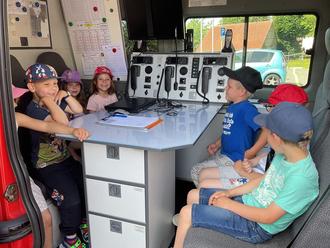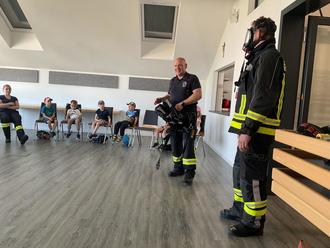 Zunächst wurde in den Räumlichkeiten des Feuerwehrhauses das Wissen der Kinder über die Feuerwehr auf die Probe gestellt und erweitert. Auch die entsprechende Einsatzkleidung durften die Kinder ansehen und befühlen.