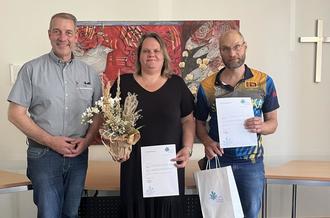 Bürgermeister Bagus überreichte als Anerkennung für das ehrenamtliche Engagement Blumen und Geschenke und dankte den beiden herzlich für die vielen geleisteten Arbeitsstunden. Es freute ihn zu hören, dass beide nach wie vor Spaß an ihrer Tätigkeit haben und noch lange nicht ans Aufhören denken.