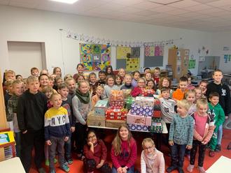 Im Rahmen der Weihnachtspäckchenaktion der Organisation "Das kunterbunte Kinderzelt e.V." spendeten die Schülerinnen und Schüler der Grundschule Uttrichshausen zahlreiche Weihnachtspakete für die Kinder in Rumänien und der Ukraine.