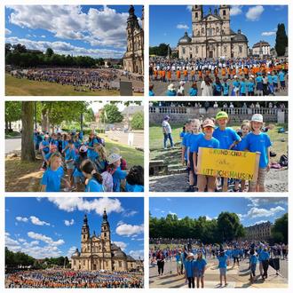 Unter dem Motto "Zauberhaft" trafen sich im Juli neun Musikalische Grundschulen auf dem Domplatz in Fulda, um gemeinsam zu singen, zu tanzen und zu musizieren. Auch die Grundschule Uttrichshausen nahm erstmals an diesem Event teil. Die Musikstücke wurden im Vorfeld mit allen Kindern einstudiert und kamen auf dem Domplatz zur Aufführung. Die Musikalische Grundschule ist ein Programm des Landes Hessen und zielt darauf ab, dass Musik in den Unterricht aller Fächer und in den gesamten Schulalltag hineinwirkt. Für die Schülerinnen und Schüler war es ein unvergessliches Erlebnis gemeinsam mit ca. 1400 Kindern zu musizieren.