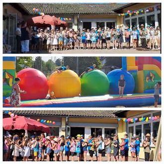 Am Freitag Nachmittag fand dann unser Schulfest statt, an dem die Schülerinnen und Schüler natürlich einige Stücke vom Domplatz für die anwesenden Gäste aufführten. Anschließend konnten sich die Kinder an den verschiedenen Spielstationen ausprobieren und hatten viel Spaß mit der Seifenblasenmaschine. Ein besonderes Highlight waren die beiden Hüpfburgen, die auf dem Pausenhof aufgebaut waren. Auch für das leibliche Wohl wurde von den Eltern bestens gesorgt, sogar eine Popcornmaschine kam zum Einsatz. Herzlichen Dank an alle Helferinnen und Helfer sowie für die diversen Spenden! Bei bestem Wetter erlebten alle gemeinsam einen gelungenen Nachmittag voller Spiel, Spaß und guter Laune.