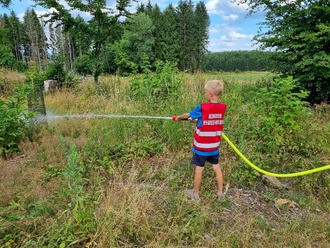 Die Kinder und Jugendlichen der Kinder- und Jugendfeuerwehr Oberkalbach haben in den vergangenen Wochen, im Zuge Ihrer Übungen, Bewässerungsaktionen für die jungen Bäume des Kalbacher Festtagswaldes durchgeführt.