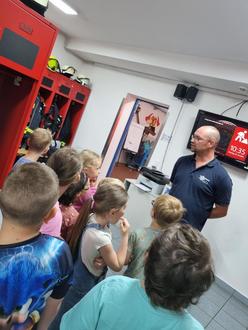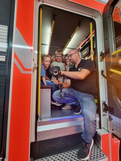 Am Dienstag, den 25.07.2023 besuchten die Vorschulkinder der kath. KiTa St. Sebastian die örtliche Feuerwehr. Dort erwarteten die Jungen und Mädchen ein kunterbuntes Programm. Mit drei waschechten Feuerwehrmännern machten sich alle auf eine interessante und spannende Reise durch die Feuerwache. So wurde die Kleidung der Feuerwehrmännern begutachtet, anprobiert und für ganz schön schwer befunden. Auch die Telefonnummer der Feuerwehr, sowie das Absetzen eines Notrufes wurde besprochen und praktisch geübt. Das Feuerwehrauto war natürlich das Highlight. Mit all den Spreizern und Schläuchen - damit muss man sich sehr gut auskennen.