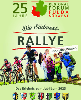 Das Regionalforum Fulda Südwest feiert in diesem Jahr sein 25-jähriges Bestehen und möchte diesen Anlass mit Ihnen feiern. Die sieben Mitgliedsgemeinden haben sich eigens dafür etwas ganz Besonderes ausgedacht: die Südwest-Rallye! Lernen Sie Ihre Heimat noch einmal aus einer neuen Perspektive kennen und haben Sie die Chance auf viele tolle Gewinne wie beispielweise eine atemberaubende Heißluftballonfahrt über die Region, einen Gutschein für einen erholsamen Wellness-Aufenthalt oder eines von vielen weiteren Erlebnissen.