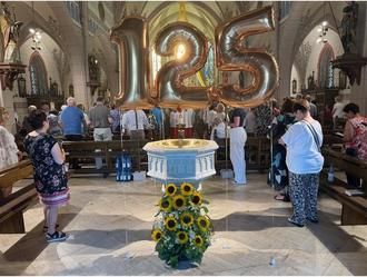 Im Anschluss an die Predigt von Weihbischof Diez wurde das neue Chrismarium – ein besonderer Aufbewahrungsort für die Heiligen Öle in der Nähe des Taufsteins – gesegnet. In der Auswahl der Kirchenmusik spiegelte sich die bewegte Geschichte der Kirche in den letzten 125 Jahren wider.