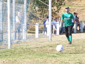 In der 41. Minute musste Oberkalbachs Keeper Jonathan Happ schon sein ganzes Können aufbieten um einen Flachschuss mit den Fingerspitzen noch von der Linie zu kratzen.