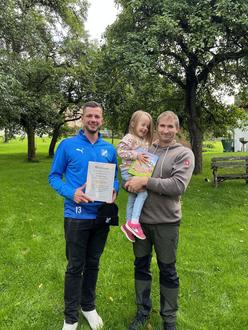 Vorstandssprecher Marcel Schulz konnte in diesen Tagen Mathilda Lamp als 300.-tes Mitglied der SGO persönlich im Verein begrüßen. "Herzlich Willkommen" steht auf der Urkunde, die er der dreijährigen Mathilda zusammen mit einem kleinen Präsent überreichte. Es wird die kleine Mathilda und Ihre Eltern, unseren langjährigen Abwehrrecken und Ex-Vorstandsmitglied Sebastian Lamp und seine Ehefrau Katharina, ebenfalls Vereinsmitglied, immer an diesen besonderen Moment erinnern.