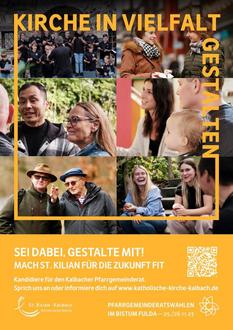 Unter diesem Motto startet die Kandidaten- und Kandidatinnensuche für unseren Pfarrgemeinde in St. Kilian. Die Kirche in Kalbach will eine zukunftsfähige Kirche sein, sie will sich den Herausforderungen der Zukunft stellen und ist für die Menschen da. Das kirchliche Leben findet an den verschiedenen Stellen unserer Ortschaft statt, besonders in den Heiligen Messen, aber auch in den verschiedenen Veranstaltungen, in den Vereinen, in der Kindertagesstätte St. Sebastian und in der Ökumene.