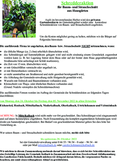Schredderaktion 2022 für Baum- und Strauchschnitt aus Hausgärten