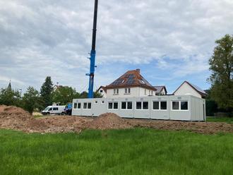 „Die vorübergehende Erweiterung der Einrichtung mit direkter Anbindung über das gemeinsame Spielgelände für alle Kinder, empfinde ich als sehr gute Lösung, um der steigenden Nachfrage von Betreuungsplätzen gerecht zu werden. Die pädagogische Arbeitsweise der Außengruppe wird in das vorhandene pädagogische Konzept eingebunden. Wir hoffen, dass die ersten Kinder möglichst bald die neue Außengruppe besuchen können und somit mit Leben gefüllt werden kann.", so der Kita-Leiter Manuel Möller.