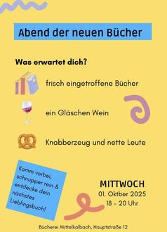 Die Bücherei Mittelkalbach lädt herzlich alle Bücher- und Weinfreunde zu einem netten und gemütlichen Abend ein.