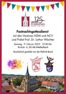 auf unserer Jubiläums-Homepage anlässlich des 125. Weihetages unserer Pfarrkirche der Pfarrgemeinde St. Kilian in Mittelkalbach. Die Feierlichkeiten begannen mit der St. Sebastians Minne am Sonntag, dem 19. Januar mit Erzbischof em. Ludwig Schick und dies war gleichzeitig der Start für unser Jubiläumsprogramm mit den verschiedenen Veranstaltungen im Jahr 2025 bis zur St. Sebastians Minne am 18. Januar 2026.