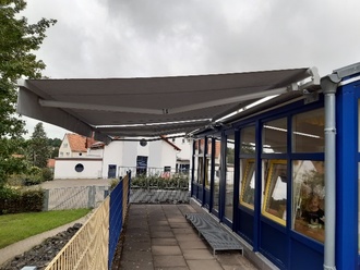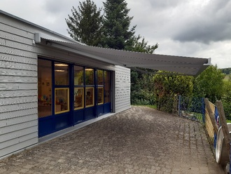 In der kommunalen Kindertagesstätte Kinderland Niederkalbach wurden im Sommer diesen Jahres vor den Gruppenräumen hochwertige Sonnenschutzmarkisen angebracht. Die Markisen dienen als sommerlicher Wärmeschutz, sodass die Räume durch die Sonneneinstrahlung weniger aufgeheizt werden.