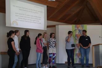 So lautete das Motto des ökumenischen Kinderbibeltages für Kinder ab 3 Jahren, im Christustreff in Uttrichshausen. Die ehrenamtlichen Teams der evangelischen Kindergottesdienste in Oberkalbach und Heubach sowie die Ehrenamtlichen der Jungschar und ökumenischen Kinderkirche Uttrichshausen organisierten für 44 Kinder diesen tollen Tag. Unterstützt wurden sie durch sehr engagierte Konfirmanden der Lukasgemeinde und katholische Jugendliche im gleichen Alter. Die Jugendlichen machten durch ein actionreiches Theater, einer modernen Fassung des barmherzigen Samariters, in der Eröffnungsandacht deutlich, dass alle Menschen gleich von Gott geliebt werden. Es ist egal wie sie aussehen, ob sie die neuste Mode tragen oder ein Handy haben. Gott sieht das Herz an und den Menschen sind Herz und Hand gegeben, um sich gemeinsam für das Gute einzusetzen. „Gemeinsam schaffen wir das“ – das war die zweite wesentliche Aussage oder Erfahrung, die die Kinder im Laufe des Tages sammeln konnten. Es gab eine Gruppenphase, in der sich die Kinder altersgerecht mit dem Thema beschäftigen konnten. Hier wurden Geschichten gelesen, Bilder gemalt oder heiß diskutiert. Anschließend konnten sie sich in den vielfältigsten Kreativangeboten austoben. So wurde beispielsweise gebatikt, ein Regenbogen-Nagelbild erstellt, mit Schrumpffolie oder Bügelperlen gearbeitet, nur um einiges zu nennen. Gemeinsame Gruppenspiele mit „Perlentransport“ oder dem Schwungtuch rundeten den Tag ab. Einen Mittagsimbiss gab es natürlich auch, denn gemeinsam Essen gehört einfach dazu und so waren alle, von 3 bis fast 60 Jahren (Kinder und Teamer) fröhlich und zufrieden, als es nach dem kurzen gemeinsamen Abschluss mit Eltern nach Hause ging.