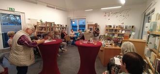 Danach galt es die Bücherei selbst zu erkunden. Neben einem eigens für diesen Abend zusammengestellten Themenregal stand hier natürlich das gesamte Angebot zur Verfügung. Wer noch keine Leserin der Bücherei war, konnte es bei dieser Gelegenheit werden. Und so konnte die Bücherei gleich 3 neue Leserausweise ausstellen.