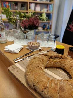 Zur Begrüßung gab es von den Damen der Bibliothek hausgemachte Minzlimonade, selbst gebackenes Brot und Blütenbutter.