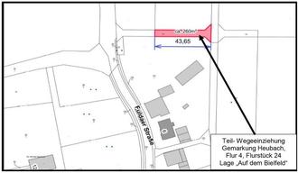 § 7 in Verbindung mit § 16 des Flurbereinigungsplanes wird dahingehend geändert, dass der im Flurbereinigungsplan unter § 16 „Nachweis der neuen Grundstücke“ zu Ordnungsnummer 8a verzeichnete und im Grundbuchbezirk 0121 von Kalbach- Heubach, Grundbuchblatt 313 eingetragene Weg in der