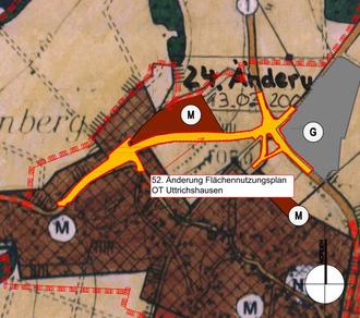 hier: räumlicher Geltungsbereich der 52. Änderung des Flächennutzungsplans (FNP) OT Uttrichshausen, Plan genordet, ohne Maßstab