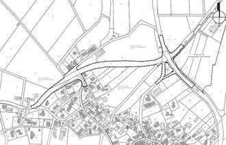 hier: räumlicher Geltungsbereich B-Plan „Verlegung der Landesstraße L 3207“ OT Uttrichshausen, Plan genordet, ohne Maßstab