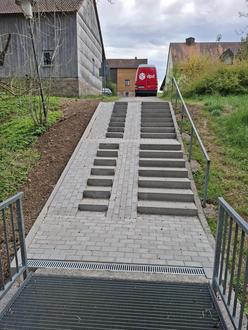 Die Treppenanlage in Oberkalbach (Verbindung „Am Fennbach und „Hinterkirchweg“) wurde in den vergangenen Wochen saniert. Die bestehende Anlage war in die Jahre gekommen und wies einige Schäden auf. Nun präsentiert sie sich wieder in gutem Zustand und ermöglicht dank des neu gestalteten, rollfreundlichen Mittelstreifens Rollstuhlfahrerinnen und Rollstuhlfahrern, Eltern mit Kinderwägen sowie Radfahrerinnen und Radfahrern eine sichere und komfortable Nutzung.