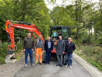 v.l.n.r. Bauamtsleiter Oliver Kottik, Polier der Firma Küllmer Stephan Auth, Ortsvorsteher Gerhard Müller, Bürgermeister Mark Bagus, Gemeindevorstandsmitglied Hugo Rensch