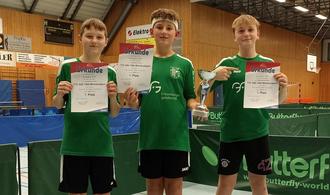 Am letzten Sonntag-Abend setzten sich (siehe Bild von links) Max Holstein, Max Schmidt und Moritz Lüth in Flieden gegen Kirchhasel durch. Auf dem Weg ins Endspiel wurden Hosenfeld (4 : 0), Büchenberg (4 : 2) und überraschend auch der Tabellenführer der Kreisliga Arzell (4 : 1) geschlagen. Dann kam es mit dem Finale gegen Kirchhasel zu einem echten Krimi. Den besseren Start hatten eindeutig die Jungs aus Kirchhasel: Nach Niederlagen von Moritz Lüth und Max Schmidt sowie nur einem Sieg von Max Holstein lang man 1 : 2 zurück, nach dem verlorenen Doppel sogar mit 1 : 3. Eine weitere Niederlage und das Spiel wäre verloren gewesen. Unser Team aber bewies eine tolle Moral: Max Holstein holte mit 5 Sätzen gegen Stehling mit seinem 2. Sieg den 2. Punkt für das Team, danach Moritz Lüth in 4 Sätzen gegen Rest den 3. zum Unentschieden. Jetzt musste das letzte Einzel entscheiden. Und hier bewies Max Schmidt mit einem klaren 3 - Satz -Sieg gegen Hohmann zum Siegpunkt sehr gute Nerven. Bravo und herzlichen Glückwunsch zum Sieg! Eine echte Mannschaftsleistung!