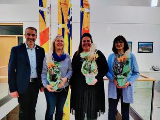 Im Rahmen einer kleinen Feierstunde überreichte Bürgermeister Bagus als Anerkennung für das ehrenamtliche Engagement Blumen und Geschenke und dankte den drei Damen herzlich für die vielen geleisteten Arbeitsstunden.