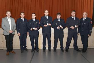 Es folgte die Übergabe der Abzeichen der Kreisleistungsübung an die Feuerwehrkameraden der Freiwilligen Feuerwehr Niederkalbach an: