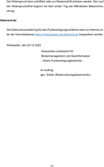 Die Datenschutzerklärung für das Flurbereinigungsverfahren kann im Internet unter der Internetadresse https://hvbg.hessen.de/datenschutz eingesehen werden.