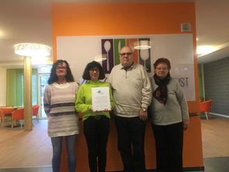 Zur Eröffnung des Seniorenzentrums MENetatis waren die Seniorenbeauftragten der Gemeinde Kalbach Roselinde Best, Andrea Dehler und Bruno Fischer eingeladen. Begrüßt wurden die Gäste von der Leiterin Frau Astrid Zoels im Café der Senioreneinrichtung. Für die Einladung bedankten sich die Seniorenbeauftragten bei Frau Zoels und überreichten der Heimleiterin einen Wandspruch mit folgendem Text „Zur Eröffnung des Seniorenzentrums MENetatis wünschen wir alles Liebe und Gute.